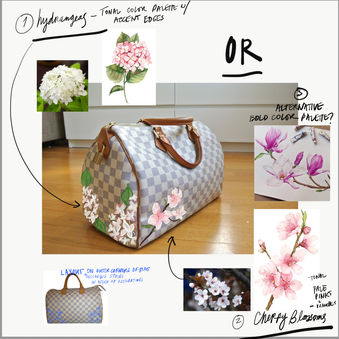 In-store live painting session for Mother's Day. Created custom florals and monogram illustrations on original Louis Vuitton Packaging for clients.